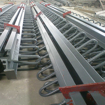 板式橡膠制品這一類伸縮裝置,很難滿足大位移量的要求;鋼制型的伸縮裝置,很難做到密封不透水,而且容易造成對(duì)車(chē)輛的沖擊,影響車(chē)輛的行駛性。因此,出現(xiàn)了利用吸震緩沖性能好又容易做到密封的橡膠材料,與強(qiáng)度高性能好的異型鋼材組合的,在大位移量情況下能承受車(chē)輛荷載的各類型模數(shù)支承式(模數(shù)式)橋梁伸縮裝置系列。